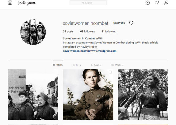 One of the goals I set for my thesis exhibit was to continue spreading the word about women in combat, both historically and in contemporary events. The main avenue I use to achieve this goal is through online platforms. Part of the exhibit was it's companion website, but additionally, I also write and maintain a monthly Substack newsletter, Facebook page, and Instagram account. By posting photographs, pertinent articles, and women's rights content, I engage with virtual audiences, keeping this historical topic relevant and informing current debate. Click on the photo to visit the webpages.